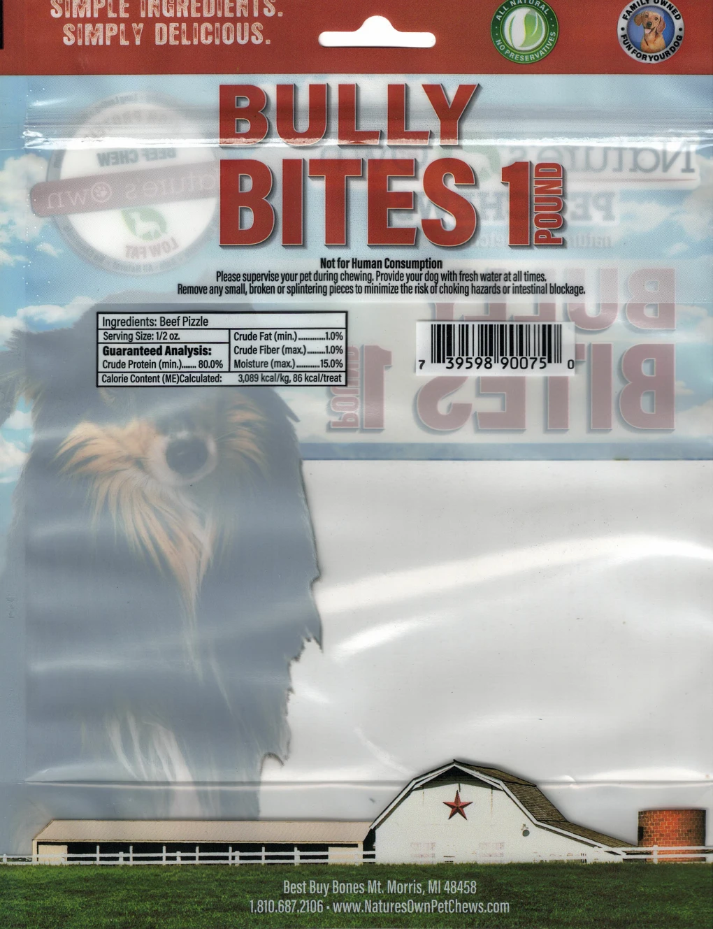 Best Buy Bones, Inc., a pet treat company based in Mount Morris, Michigan, has issued a recall for four lots of its Nature’s Own Pet Chews Bully Bites 1 Pound pet treats due to potential contamination with Salmonella. The recall affects lots 19379, 19380, 19381, and 19382, all with an expiration date of September 2027.